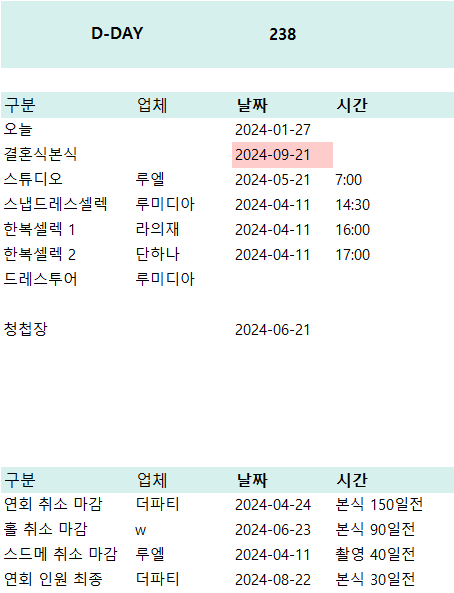 | <양식공유> 결혼식 큐시트 엑셀 파일 공유 (0) | 2024.03.17 |