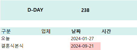 본식일을 입력하면 자동으로 D-DAY가 계산되어 표시됩니다.