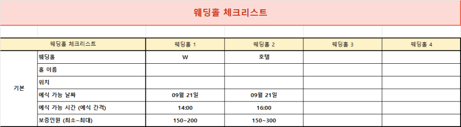 간단하지만 이 양식을 사용하면 사전에 다양한 홀을 검토할 수 있어 후회 없는 최선의 선택을 할 수 있을 거예요.